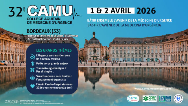 32ème Congrès Aquitain de Médecine d’Urgence – CAMU 2026 Par admin12 mars 20261 avril 2026 - 2 avril 2026IMS PessacSite internetMédecine d'urgence
